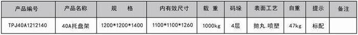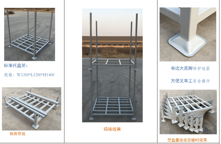 40A型托盘架 产品介绍:本产品主要优点是与叉车配合实用,可充分利用仓库高度空间。降低仓储费用,管理和经营费用。主要用于软袋子包装和纸箱包装物品存放 和颗粒物品存放防止积压,常用于冷链、饲料、塑料颗粒仓储及物流。