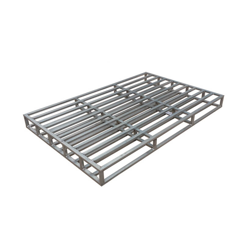AA型直角双面钢托盘 产品编号:SMTPAA1218150 产品自重:54kg 产品名称:直角双面托盘 产品载重:1500kg 产品规格:W1200×L1800×H150 产品配置:采用镀锌方管20*30*1.5,间隔98mm焊接。