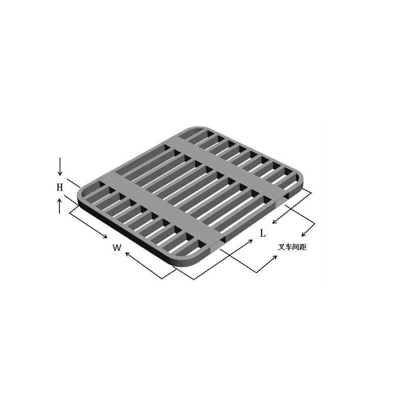 BA型圆角双面钢托盘 产品用途:主要为袋装的软包装大批量物品存储和周转。改变老式四个尖角焊接,采用圆角工艺,主要防止麻袋在放置时不容易刮破。